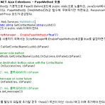 JSON, Ajax, ASP.NET 비동기, UpdatePanel 서버와의 통시 시, 비동기 랜더링 방식 가운데 스크립트에서 Web Service Container에서 노출하고 있는 함수를 Ajax로 호출하는 방법입니다. PostBack이나 Refresh가 발생하지 않습니다. Ajax - Webservice 호출.출처 : http://msdn.microsoft.com/en-us/magazine/cc163499.aspx 이하 첨부파일 참조 PostBack.aspx - PostBack 관련 예제입니다. RawAjax.aspx - 제네릭 처리기를 이용한 예제입니다.(Request에 대한 Response만 존재하는 방식) ClientWebServiceCall.aspx - Ajax Extentions - Page..