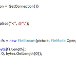이미지 를 DB에 바이너리코드 로 저장하는 방법입니다. picture 는 해당 이미지가 저장되어있는 파일 경로입니다.자바스크립트에서 replace 해서 가져온거라.. 다시 replace를 해주고. * 파일업로더를 이용하면 파일업로더 안에 들어있는 객체를 이용해도 가능* bytes 는 바이너리 형태로 저장되어있다.이놈을 다시 DB로 인서트해줄때는SqlDbType.VarBinary 형태로 타입을 설정해주지 않으면System.Byte[] 로 들어간다. 이상태로 ExcuteNonQuery()를 실행하면 바이너리코드로 들어간다.